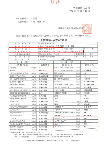 その自然の恵みを毎日少しずつ採水し、全国のみなさまにお届けしています。「ぞっこん水」は加熱殺菌処理をしていません!!腸を元気にして人体の免疫力を高める水の条件は、加熱殺菌していないことです。加熱殺菌してしまうと、水の組成が変わり、生理活性が失われてしまいます。水のおいしさの決め手となる酸素も炭酸ガスも失われてしまいます。